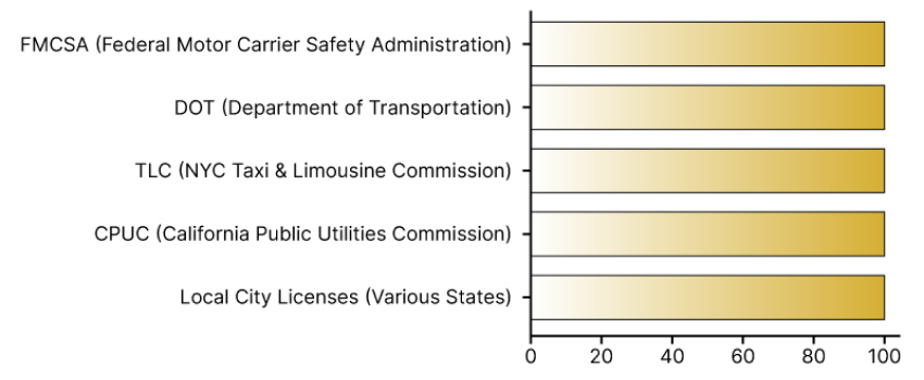 The U.S. luxury car service industry is governed by federal, state, and local authorities. At Prestige Ride, we proudly operate in full compliance with: